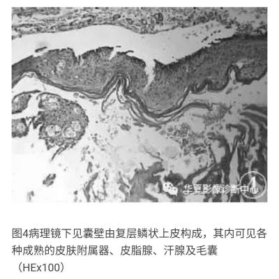 封夼 3138天前切除送病理学检查(图4)。病理诊断:(头皮)皮样囊肿并感染。