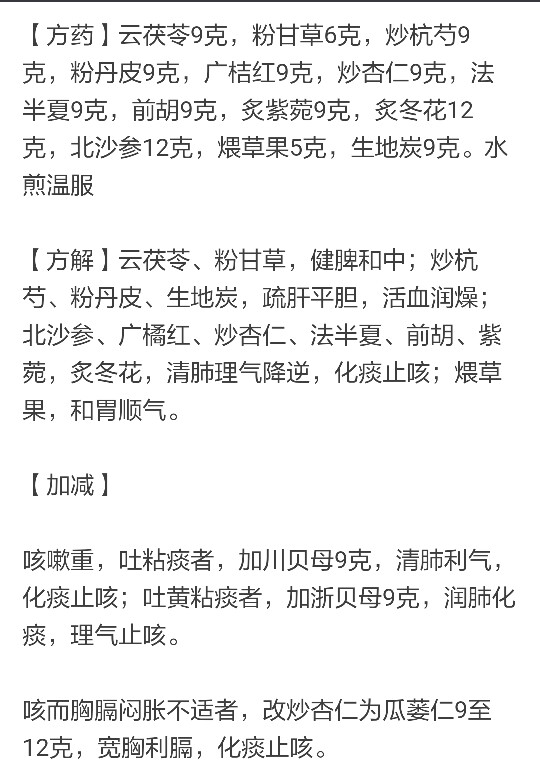 咽喉不利,干涩发痒,痰白胶粘者,改紫菀为苦桔梗9克,化痰以利咽喉。