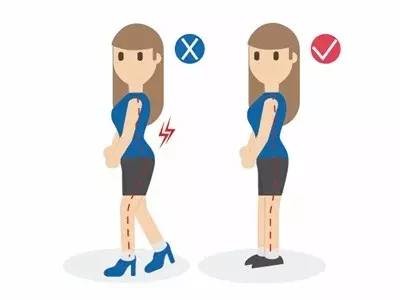 危险原因:穿高跟鞋会使人体的重心过度前移,腰椎受力变得集中,容易造成骨盆前倾,脊柱弯曲增大,长期如此很容易造成腰椎间盘损伤。