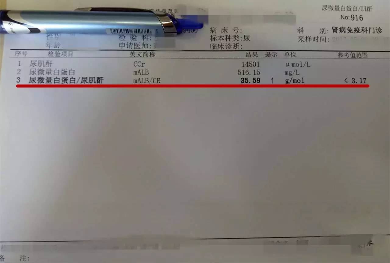 一些肾病患者蛋白尿程度非常轻微的时候,尿白蛋白肌酐比这项检查就能反应出来,因为它非常敏感。