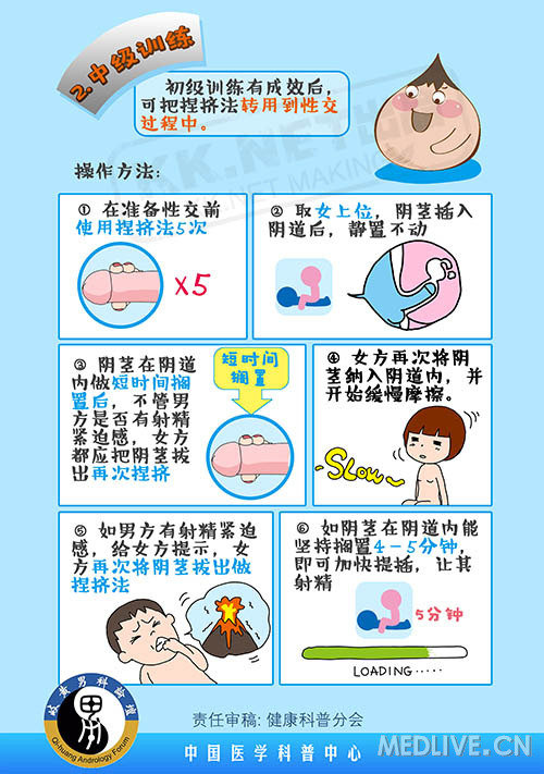 最后,小编为大家奉上由医脉通圈友分享在泌尿外科圈子中的“早泄行为疗法训练教程”。该教程来自中国医学科普中心,通过多图演示了早泄行为疗法的训练方式,画风清新,讲解清晰,萌萌哒风格还可以缓解不少尴尬。