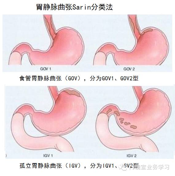 之所以现在称之为食管胃静脉曲张,因为胃底的曲张静脉说法很笼统,分型也不够精确。目前胃内的曲张静脉分为2种,一种是食管胃静脉曲张(GOV),一种是孤立胃静脉曲张(IGF)。临床上,我们比较常见的是第一种即食管胃静脉曲张,也就是食管静脉曲张延续至胃底的情况。
