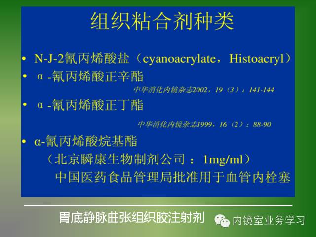 我们现在用的组织胶是进口的,太贵了!但是总感觉进口的组织胶比国产的康派特要起效快,能够更迅速的充满曲张的血管从而达到更快的止血效果。没有盲目崇拜进口,可能是我们对国产组织胶的使用还没有达到理想的境界。