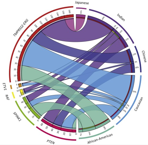 几组研究结果表明,在非裔美国人男性人群中前列腺癌患者的血清中往往出现较高水平的雌二醇和前列腺特异性抗原(PSA)。同时非裔男性人群在癌症晚期的整体生存水平相比高加索人群要差很多。相比之下,在美国,亚洲男性和亚裔美国人在前列腺癌发病率要低很多。但尽管亚洲男性在前列腺癌的发病率相对较低,但是事实上在亚洲的男性更容易发展为前列腺癌晚期,原因可能是缺乏癌症早期检测所需的分子筛查方法和肿瘤异质性筛查诊断工具等现实原因。(Trends in Cancer, March 2016, doi: 10.1016/j.trecan.2016.01.005)