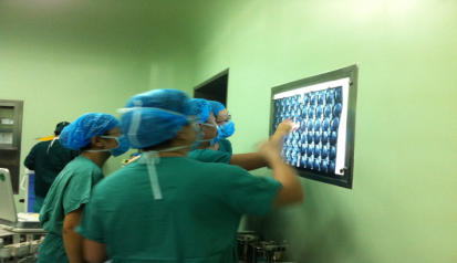 对凶险性前置胎盘、胎盘植入病人,术前组织全科及儿科、麻醉科、妇科、外科、血液科等相关科室进行术前病例讨论,确定手术方式及治疗方案。术前带领手术团队阅读MR片,再次确定胎盘位置及植入情况,确定手术切口。