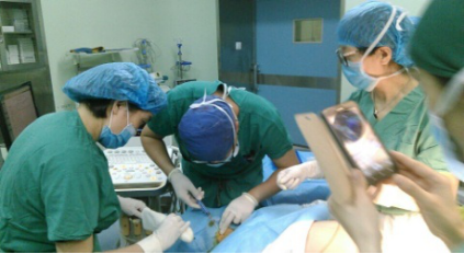 凶险性前置胎盘伴有膀胱大面积植入,术中6分钟出血1200ml,急性循环衰竭。母子平安出院。