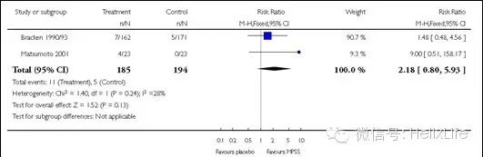 要做好一篇meta分析至少要掌握一些基本的技能,绘制一幅清晰明了、美观直接的森林图就是一项必备技能。笔者在这里不打算探讨什么高深的统计学理论,本文将以图示的形式展示如何用RevMan 5.3软件做一幅符合SCI杂志投稿要求的森林图。下图是一篇正式发表的森林图,下面我们将采用RevMan软件做出一幅一样的图形。
