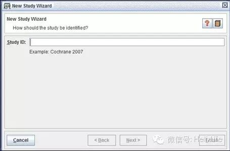 然后单击右边的条目里的Add study,出来了下面这幅图,按照操作一步一步填入信息,一个研究就添加完毕了。这里提醒大家的是在输入研究ID的时候如果跟Example一致的话,后面就可以自动生成Year,而不需要我们去添加了。另外如果碰到了一个研究有着多篇发表文献的情况,在RevMan中我们也可以将其添加在同一研究的序列下。在添加完一个研究之后,我们可以继续添加下一个研究直至所有研究添加完毕。或者我们先前使用了EndNote管理文献,就可以将需要的文献从EndNote软件export后批量导入RevMan软件。