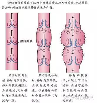 静脉瓣膜闭合不全而导致下肢静脉血逆流,静脉血管扩张