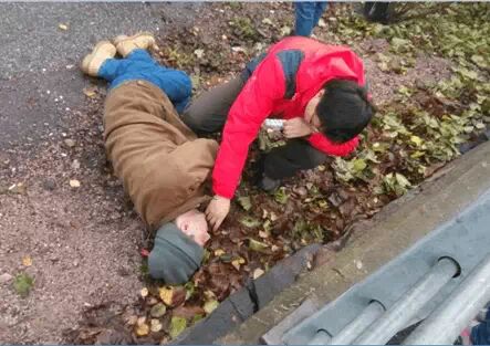 海外施援手,孙建军2013年11月3日赫尔辛基救助路边人
