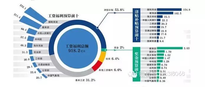 83部门工资福利预算918.2亿元,其中津贴补贴是基本工资的近两倍