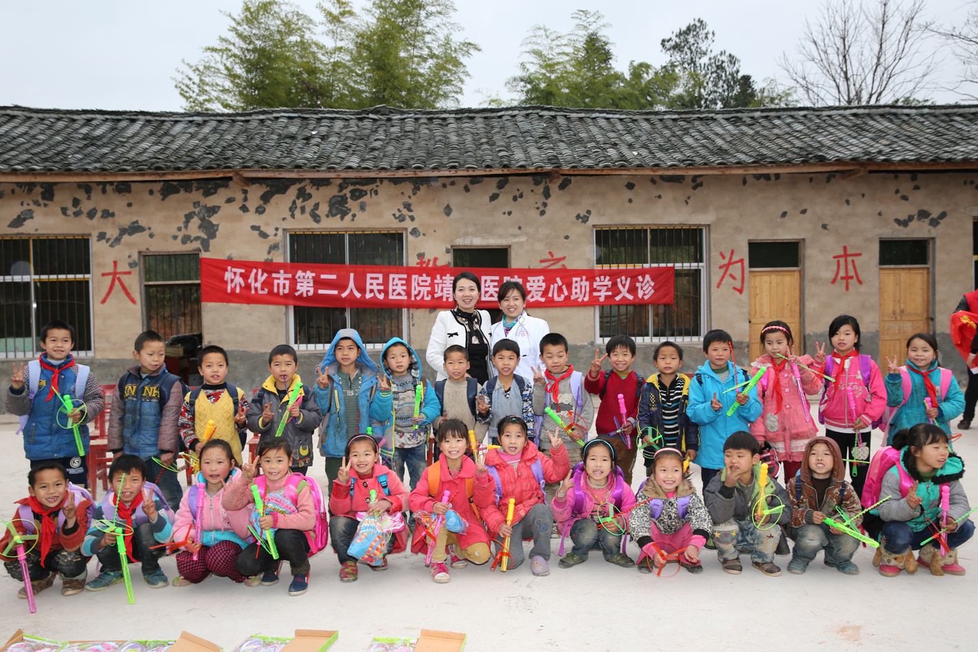 贵州省黎平县永从乡宰坑侗寨是一个依山而建的寨子,去年7月6日下午3时20分,这里不幸发生火灾,28栋房屋被烧毁,157人受灾。靖州志愿者协会在得知灾情后,马上组织志愿者们捐资捐物,采购好日用品和常用药物及防暑药品,第一时间送到了灾区,受到了当地老百姓的称赞。如今,隆冬已至、春节临近,志愿者们牵挂着受灾群众和孩子的困难。当天,靖州志愿者协会和黎平县志愿者协会的义工们一起翻山越岭,把两地志愿者募集到价值近万元的衣裤鞋袜、文具书包、文体用品、图书玩具送到了永从乡高贡教学点,给这里的42个孩子们带来别样的惊喜。随行的我院靖州医院的儿科主任佘远凤主任医师还给孩子们一一进行了健康检查,并给一些营养不良的孩子们分发了补钙补锌等的保健药品。