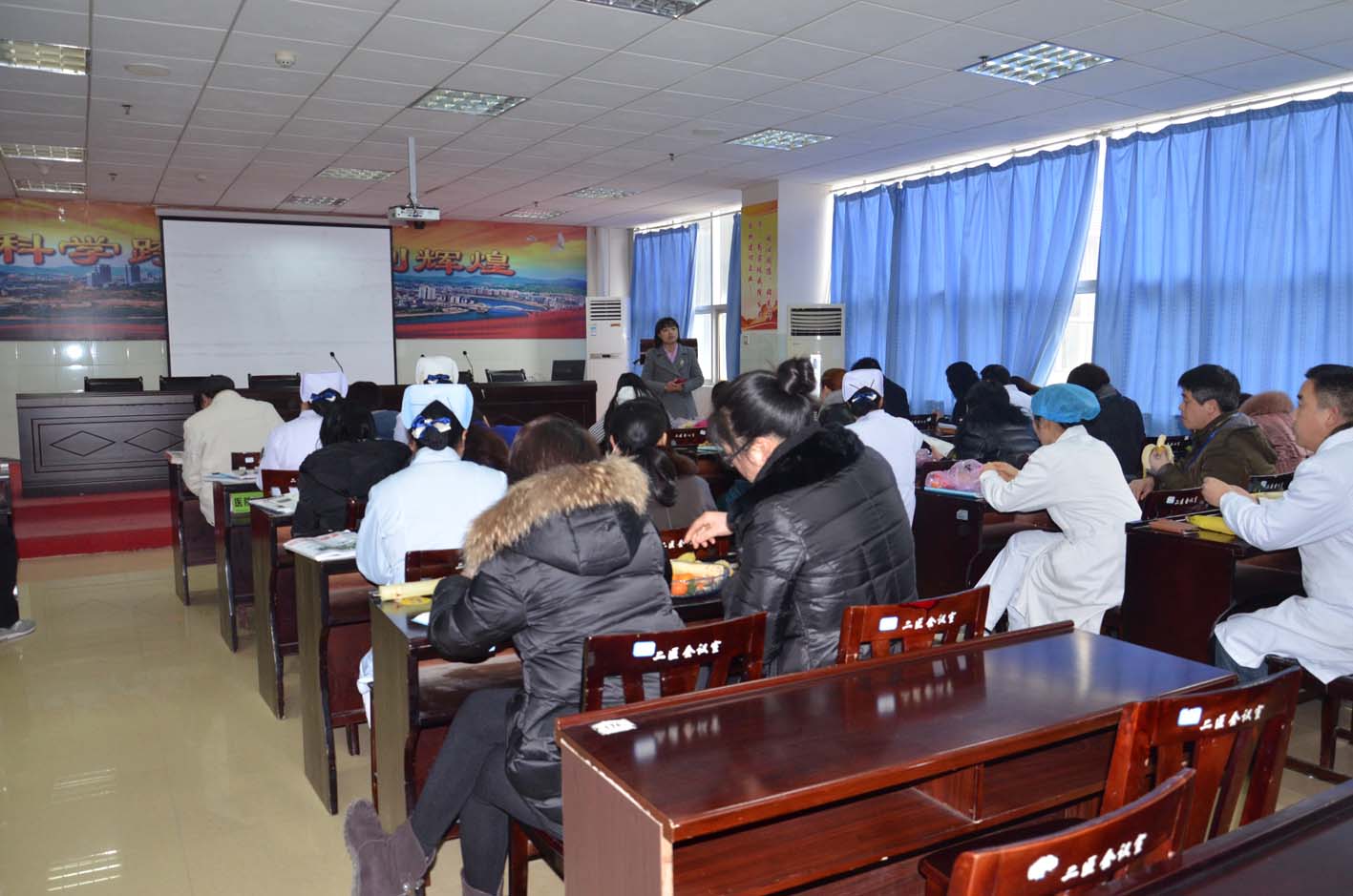 本报讯(肖颜) 为了协调好护理部与各职能部门之间的工作,进一步提高护理服务质量及患者的满意度,1月8日,我院护理部牵头召开了“护理部与相关科室及职能部门交流会”。会议由护理部主任饶晓华主持,护理部全体成员、院办、党办、医务科、总务科、保卫科、设备科、宣传办、医疗服务部、人事科、经管办、计算机中心、超声科、影像科、核医学科、药剂科等各职能科室负责人以及全体护士长参会。