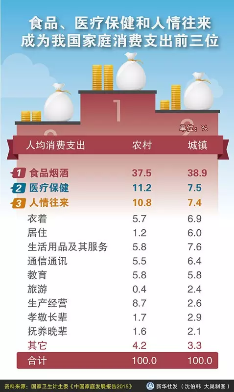 5月13日,国家卫生和计划生育委员会就《中国家庭发展报告(2015年)》举行例行新闻发布会并发布报告,报告显示“食品、医疗保健和人情往来成为我国家庭消费支出前三位”(具体见文末图)。同时大家关心的“互联网+医疗”成为焦点话题。国家卫计委新闻发言人宋树立表示互联网已经和正在进一步深入地与医疗服务相结合,比如说原卫生部做的是远程会诊,现在我们提的是远程医疗,国家正在修改制定互联网医疗管理新政。