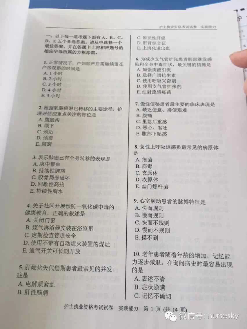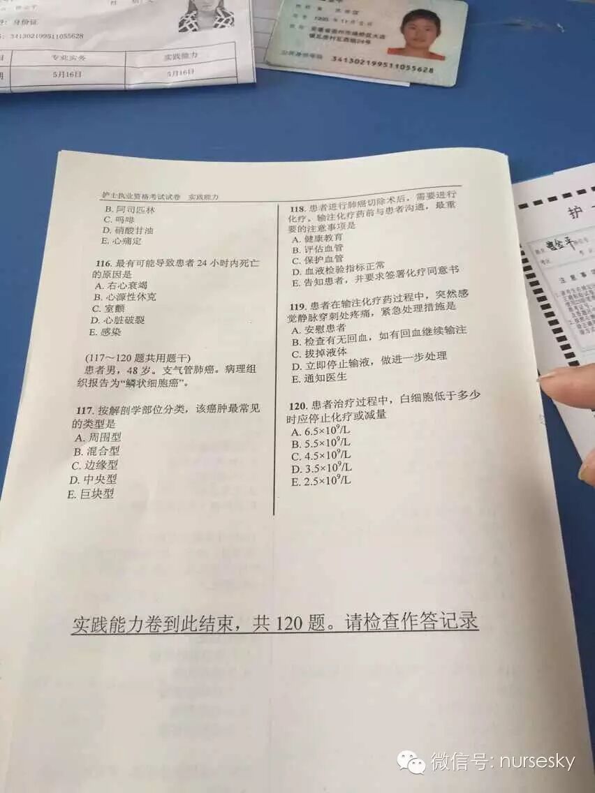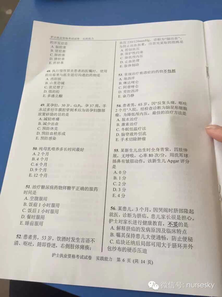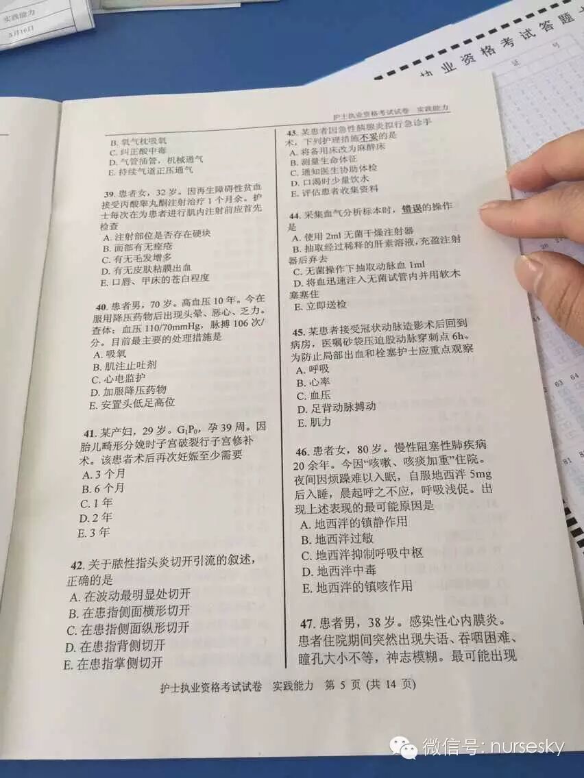 提示:以下为部分网友提供的2015年护士资格考试实践能力真题试卷图文版及答案,中国护士网微信暂不做任何说明,仅供大家参考所需。