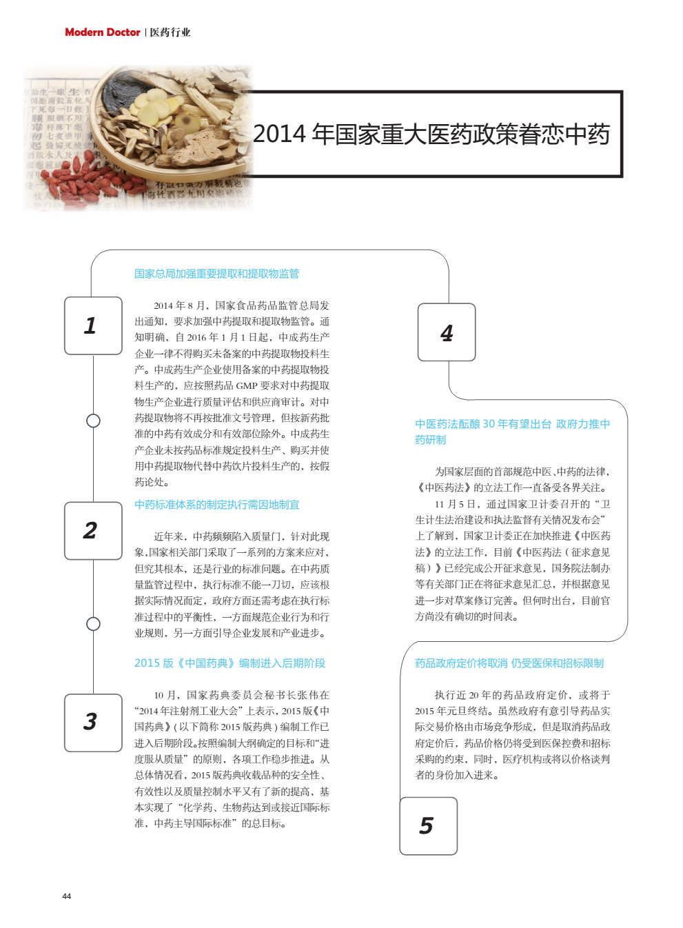 2014 年国家重大医药政策眷恋中药