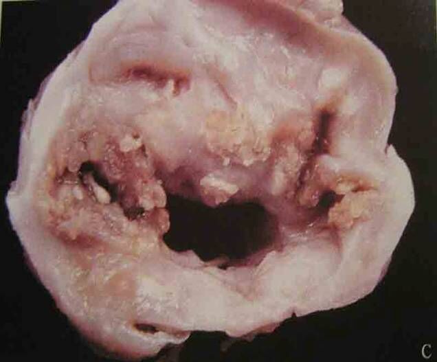 发生病变狭窄的二尖瓣(钙化溃疡)